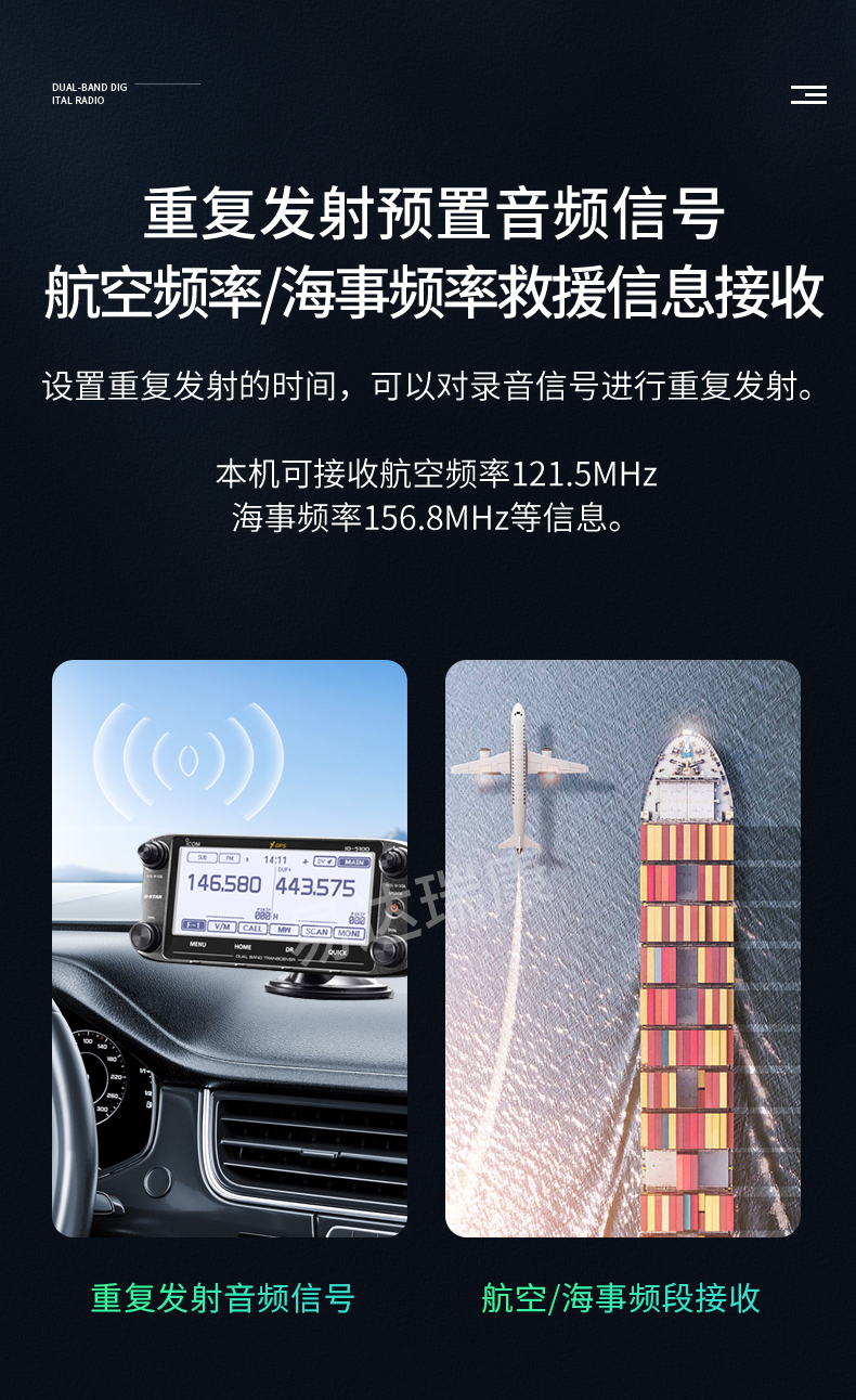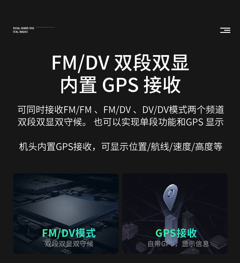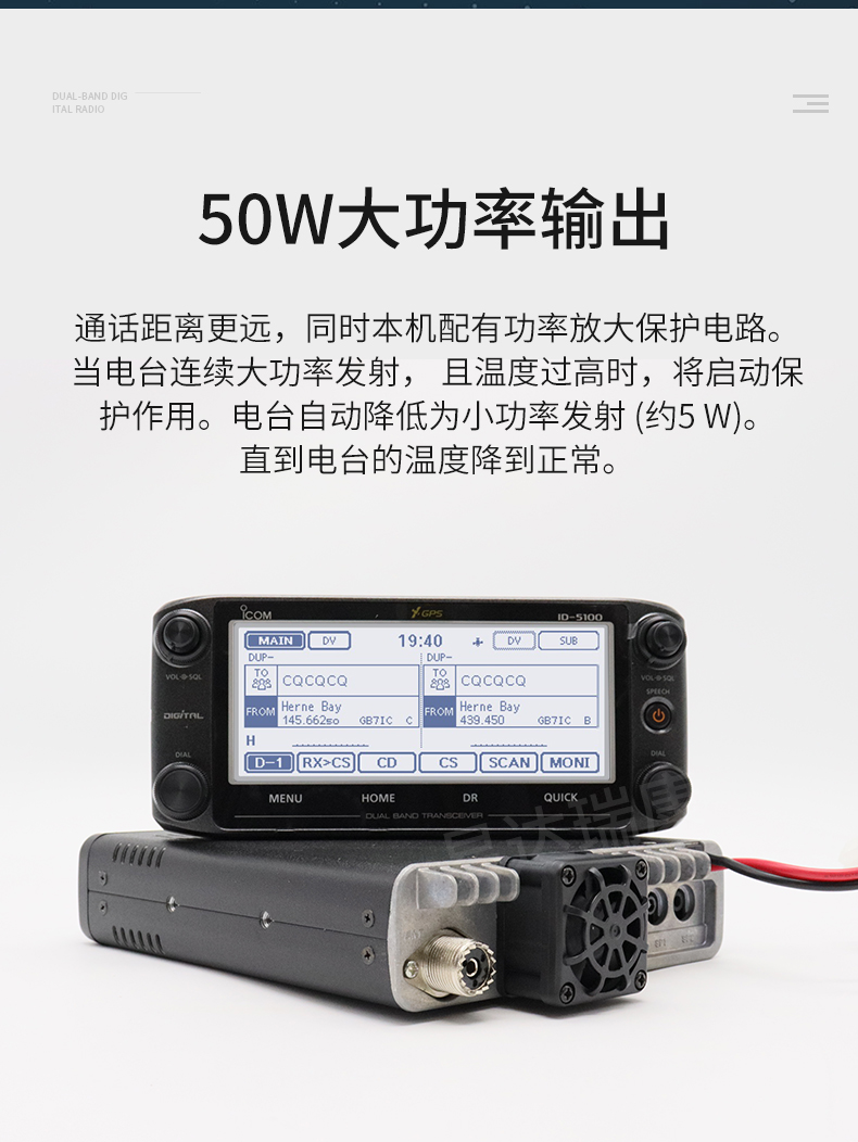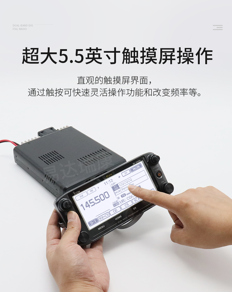 • 144MHz/430MHz雙段雙顯雙待,觸摸屏幕,50W大功率,內置GPS。