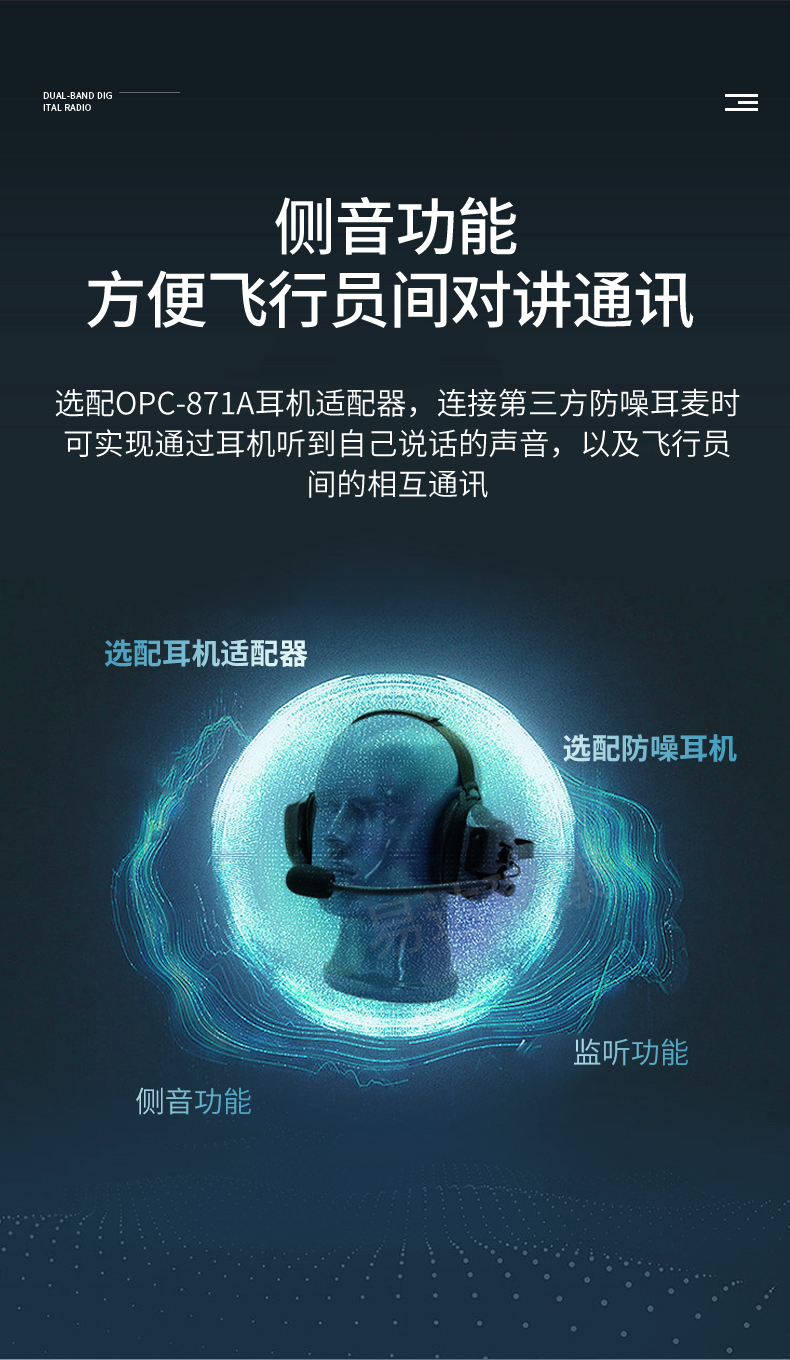 • ANC自動降噪,機場航空用車載臺,可選配藍牙耳機。